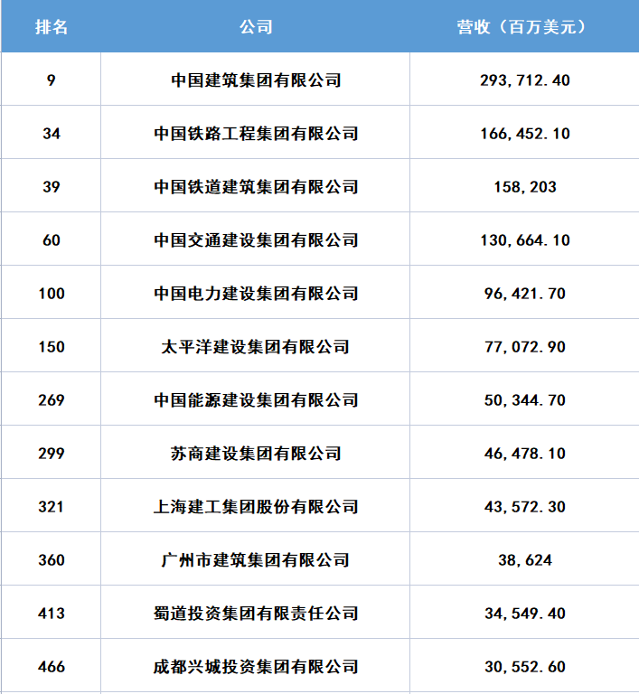 2022年《財富》世界500強排行榜公布!中國12家工程與建筑行業(yè)企業(yè)上榜
