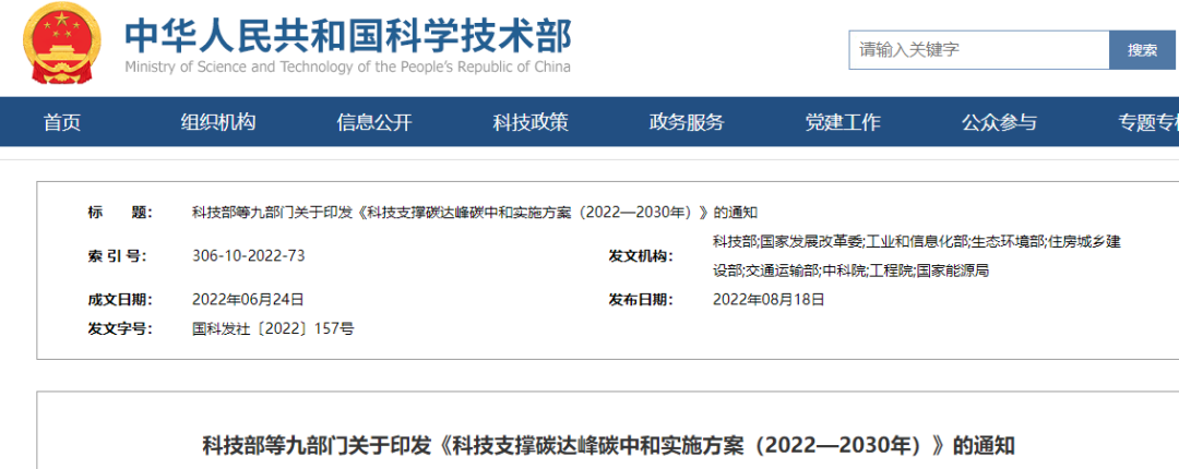 為深入落實黨中央、國務(wù)院有關(guān)部署,做好科技支撐碳達峰碳中和工作,近日,科技部等九部門聯(lián)合印發(fā)《科技支撐碳達峰碳中和實施方案(2022—2030年)》(以下簡稱《實施方案》),統(tǒng)籌提出支撐2030年前實現(xiàn)碳達峰目標的科技創(chuàng)新行動和保障舉措,并為2060年前實現(xiàn)碳中和目標做好技術(shù)研發(fā)儲備,指導(dǎo)全國科技界以及相關(guān)行業(yè)、領(lǐng)域、地方和企業(yè)開展碳達峰碳中和科技創(chuàng)新工作。