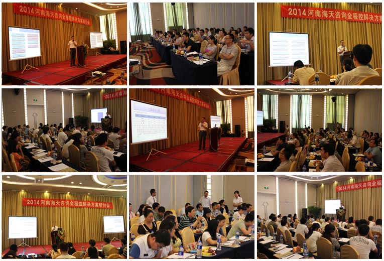 2014年8月29日,由河南海天工程造價(jià)咨詢(xún)事務(wù)所有限公司主辦的“2014年全程控解決方案研討會(huì)”在洛陽(yáng)雅香金陵大酒店三樓會(huì)議室召開(kāi)。河南海天咨詢(xún)集團(tuán)董事長(zhǎng)韓江濤為研討會(huì)致開(kāi)幕辭;海天綜合體技術(shù)專(zhuān)家、研討會(huì)主講人田占嶺,與來(lái)自洛陽(yáng)、鄭州等地60余位房地產(chǎn)開(kāi)發(fā)企業(yè)領(lǐng)導(dǎo)、成本部經(jīng)理分享了海天的“全程控”服務(wù)理念和深層實(shí)戰(zhàn)經(jīng)驗(yàn)。