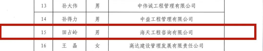 近日,河南省注冊造價工程師協(xié)會文件發(fā)布關(guān)于河南省2022年度中價協(xié)資深會員的通知。海天咨詢總工田占嶺獲得中價協(xié)會資深會員。海天咨詢在2023年接連獲得喜訊,彰顯了企業(yè)發(fā)展新成就,這也將激發(fā)新和成全體員工昂揚斗志。