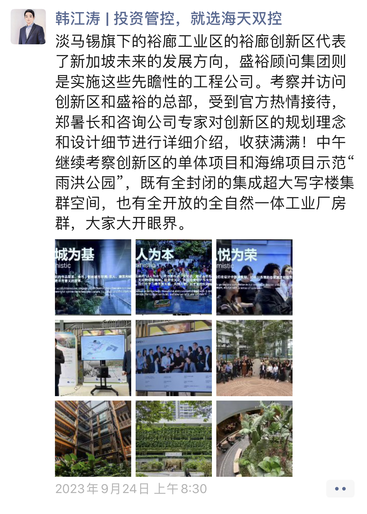 2023年9月21日—27日,海天咨詢董事長韓江濤隨同國家教學(xué)名師、中國工程咨詢學(xué)術(shù)泰斗與行業(yè)領(lǐng)軍人物尹貽林教授帶隊(duì)的中國重大工程技術(shù)投資管控智庫代表團(tuán),前往馬來西亞參加2023年度亞太工料測(cè)量師協(xié)會(huì)(PAQS)大會(huì),并在會(huì)議期間參訪AUTODEK亞太總部、新加坡盛裕集團(tuán)、裕廊創(chuàng)新區(qū)、新加坡南洋理工大學(xué)、馬來亞大學(xué)!