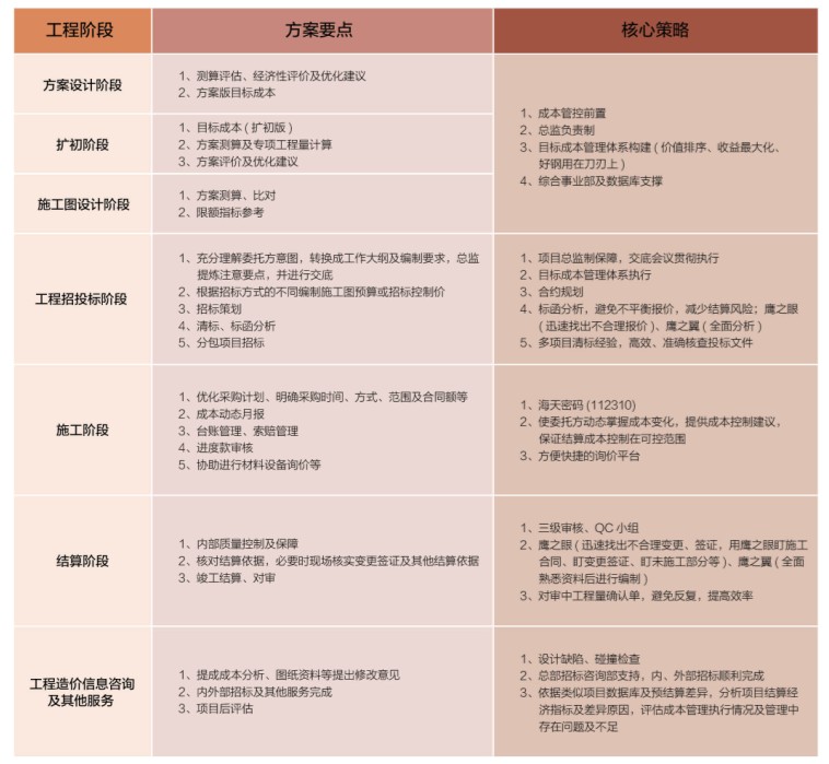 竣工結(jié)算階段,包括了具體的服務(wù)流程,以及造價數(shù)據(jù)庫的整理和后評價等工作。