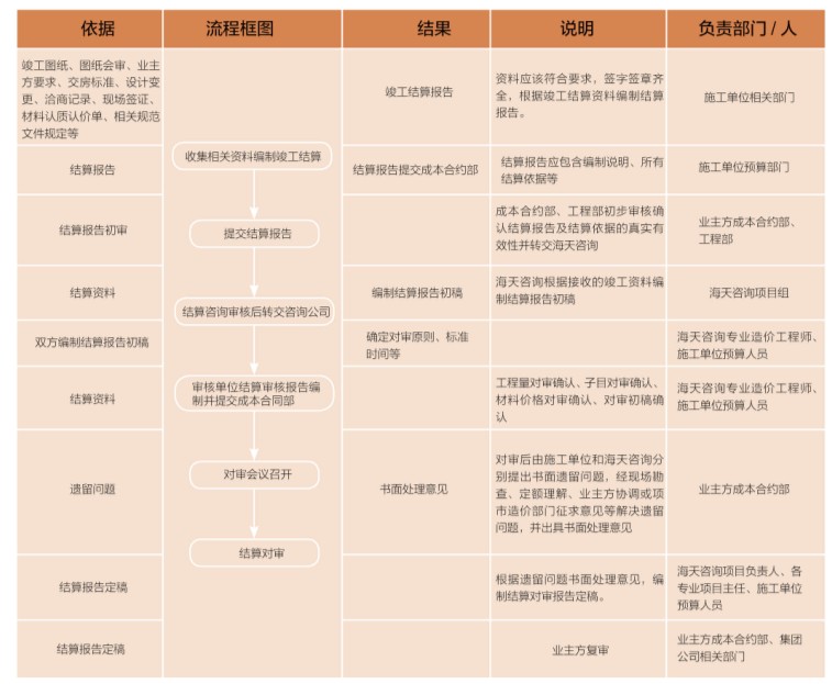 竣工結(jié)算階段,海天咨詢提供的服務(wù)流程如下。